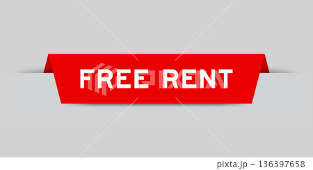 Red color inserted label with word free rent on gray background