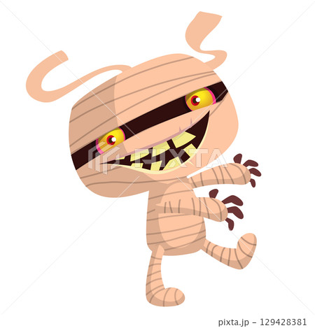 Cartoon funny walking mummy character design. Vector illustration of monster wrapped in strips of linen for Halloween party theamed decoration isolated