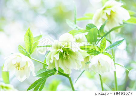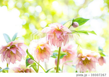 写真素材:冬枯れの庭を彩るクリスマスローズ