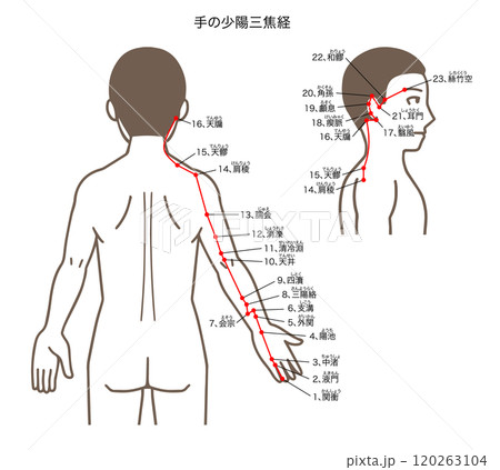 鍼灸の経穴、手の少陽三焦経、ツボのイラスト