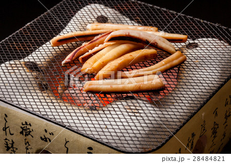 焼きいか、イラスト、食べ物、料理、いか、イカ、焼きイカ、イカ焼き、イカ焼、するめ、焼く、スルメ、