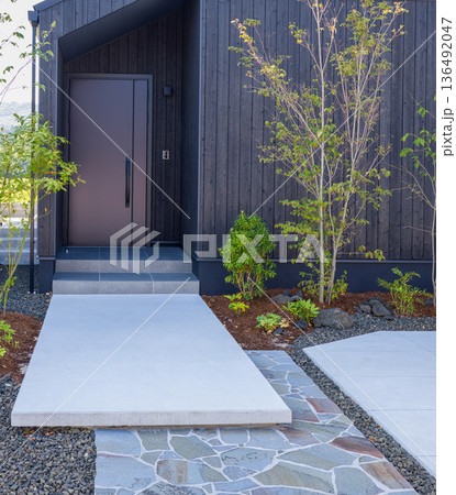 住宅イメージ 新築住宅 焼杉板壁のエントランス