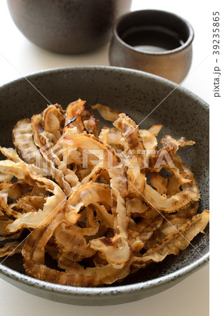 ほたて貝ひも。日本酒のおつまみイメージ。