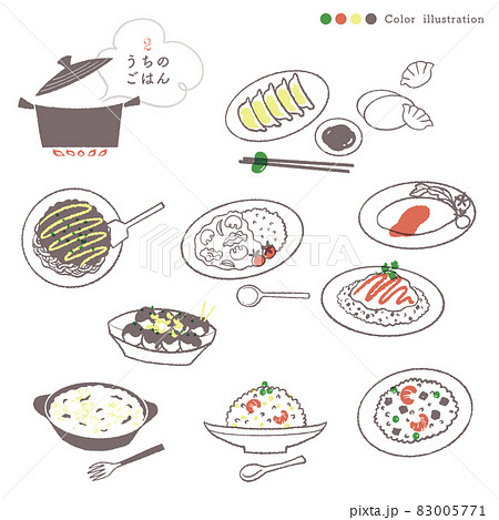 定番ごはんの手描きイラスト-2/ポイントカラー