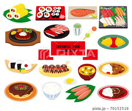 日本食のベクターイラストアイコンセット 寿司 カレーライス