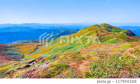 秋の焼石岳登山(つぶ沼コース):東焼石岳・六沢山・天竺山を望む