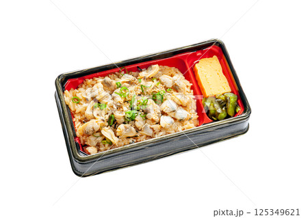 お持ち帰りのアサリ飯のお弁当【白背景・切り抜き】
