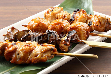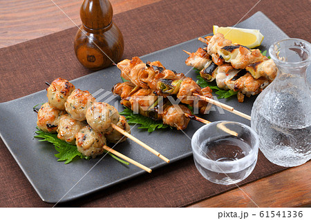 焼鳥、ヤキトリ、やきとり、焼き鳥、串焼きのセットイメージ。