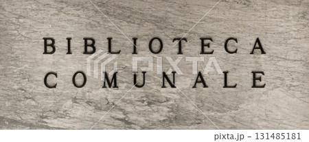 Library plaque on marble wall, Public Library in Italian - Biblioteca Comunale