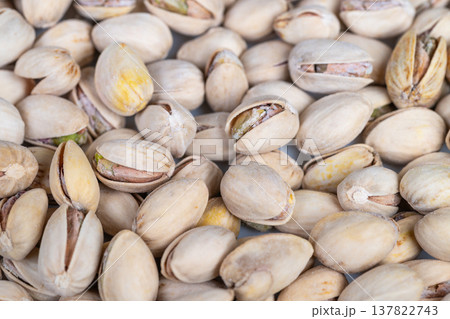 Roasted pistachios piled on display with cracked shells revealing toasted kernels, warm tones and crunchy appeal, evocative of snack stalls, gourmet shops, and food advertising