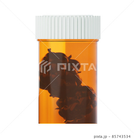 Cannabis bud in plastic container. Medical weed 3d render illustration icon.