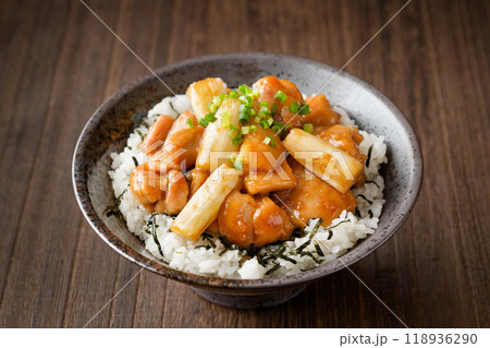 鶏モモ肉の照焼き丼、テリヤキ、照り焼き丼。
