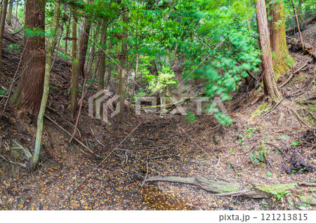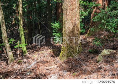 落ち葉散る春日山原始林の遊歩道 奈良市