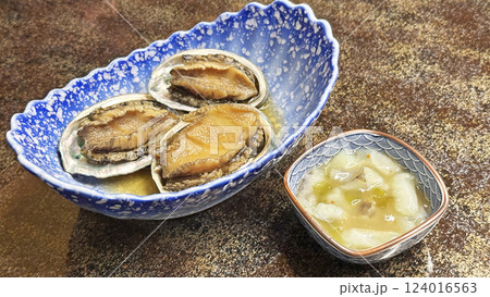 飲食店のメニュー(お皿に盛られたトコブシ)