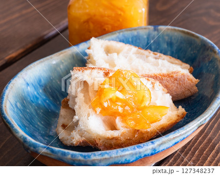 柑橘の果皮と果実を甘く煮て作ったマーマレード・ジャム。パンに塗って朝食に。