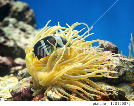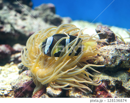 ハタゴイソギンチャクと共生するカクレクマノミ