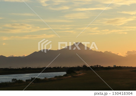 熊本から見た雲仙普賢岳の夕景