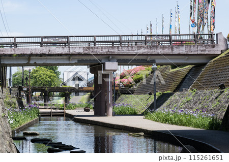 玉名の花スポット裏高瀬川に咲く花肥後菖蒲の風景