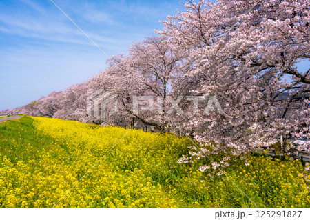 日本の春 桜と菜の花満開の熊谷桜堤 熊谷市 日本