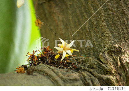 カカオ(チョコレート原料)の花(黄色くてちいさなかわいい花が咲いた)
