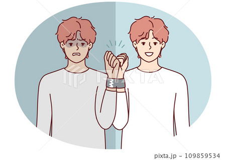Similar men with tied hands for psychological problems or internal disorder concept. Vector image