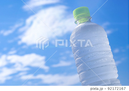 キンキンに冷えたペットボトルの水と青空
