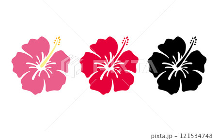ハイビスカス フラットデザインアイコンセット ベクターイラスト