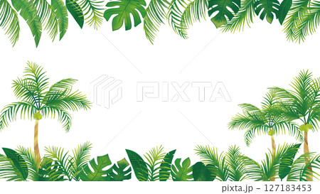水彩風 トロピカル熱帯植物のセット飾りフレーム3(16:9)