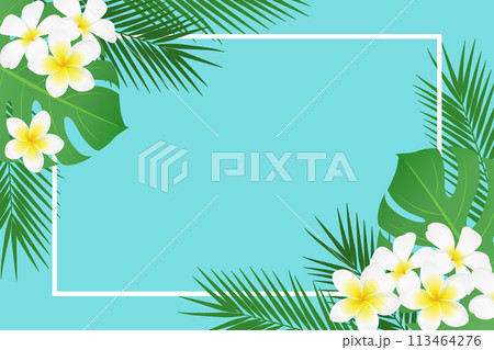南の島をイメージした植物のフレーム素材。爽快感ある青い夏の背景素材。