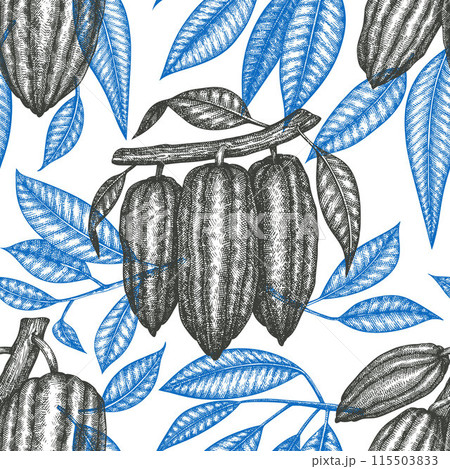 Cocoa Banner Vector Seamless Pattern. Chocolate Retro Cocoa Beans Background. Vintage Style Hand Drawn Illustration.