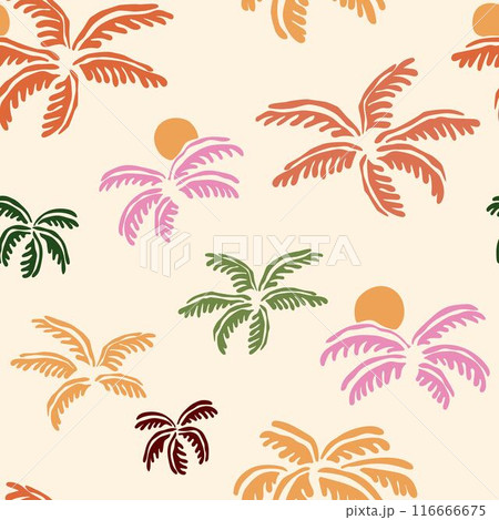 Cute colorful palm leaves pattern. Summer exotic jungle plants background, vector wallpaper, beach textile design