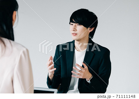 インタビューを受ける・対談をする若い男性