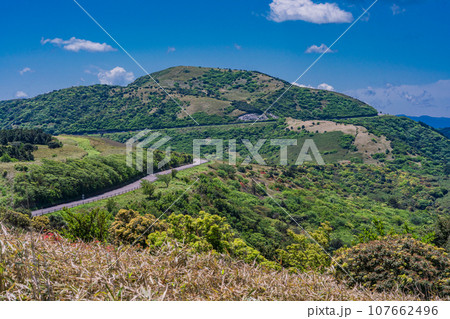 (静岡県)ツツジ咲く伊豆スカイラインから望む富士山