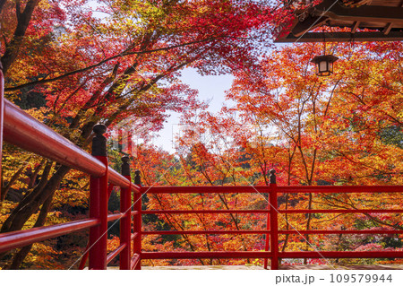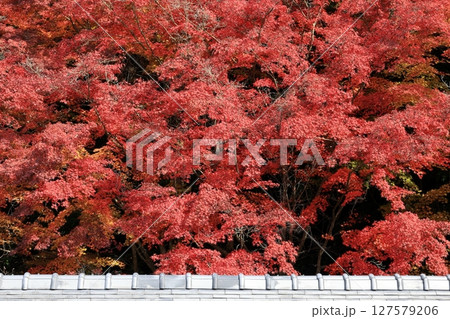 秋の京都 今熊野観音寺 茶所から見る燃えるような赤色の紅葉