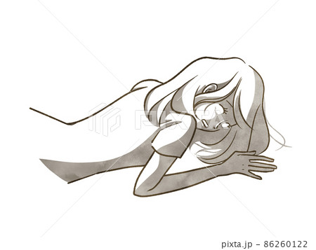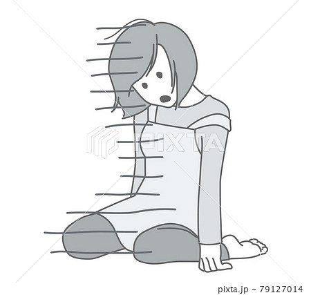 燃え尽きた 疲れ果てた スーツ(ストッキング着用)の女性 イメージイラスト