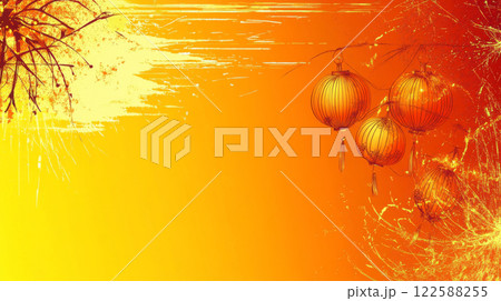 Chinese New Year background with Chinese lanterns, Chinese tassel and peach blossomon blur background.