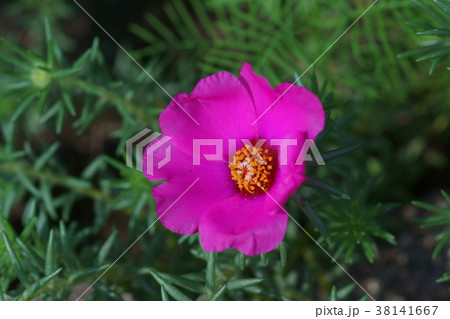 夏の庭に咲く濃いピンク色のマツバボタンの花