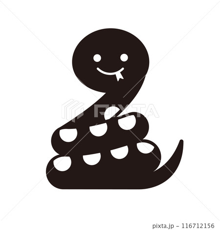とぐろを巻いた、かわいいヘビのイラスト素材。背景透過のシンプルなヘビのシルエット。