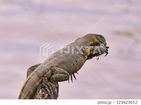 マニャラ湖のナイルオオトカゲ(倒木で休む姿)