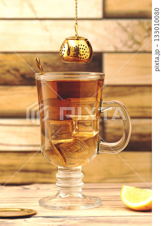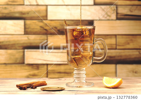 Cup of Cinnamon Lemon Tea on Wooden Table