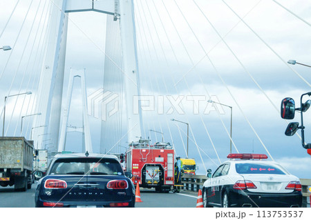 交通事故による渋滞風景