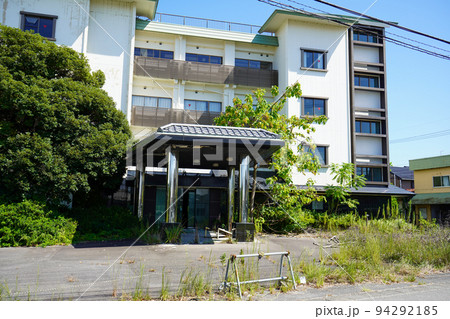 廃業して草木が生い茂り荒廃の進む元温泉旅館