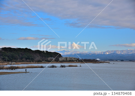 《石川県》加賀市柴山潟からみた冠雪の白山