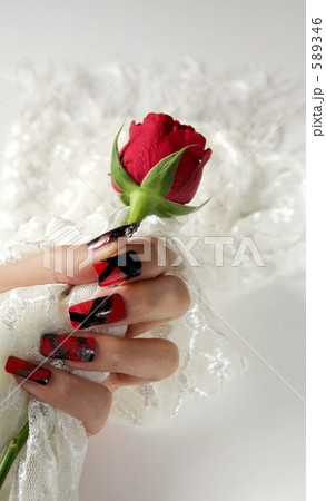 赤い薔薇とネイル