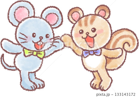 かわいい動物達のパーティー_手を取り合うネズミとリス