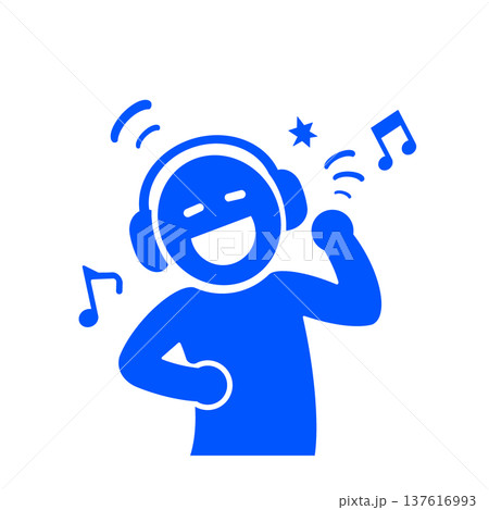 ヘッドホンで音楽を楽しむ人物ピクトグラム(青)