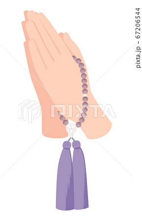 片手に数珠を通してする合掌のイラスト。