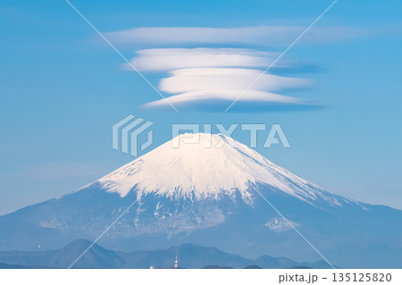 江の島 片瀬西浜・鵠沼海岸から観る富士山の夕景