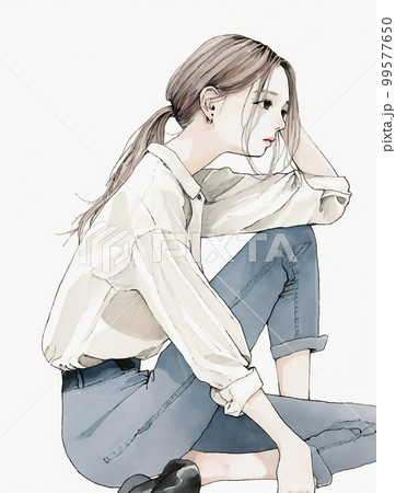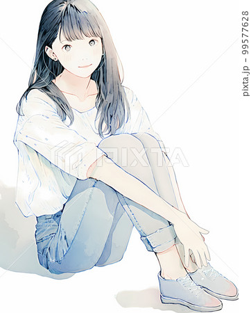 片膝を立てるの画像素材(写真・イラスト) 1ページ目