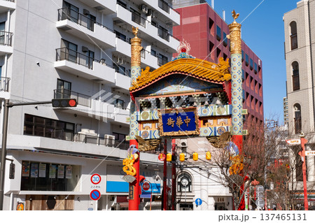 日本の横浜都市景観 横浜中華街・善隣門などを望む(奥は中華街大通り)…新時代へ=令和7年1月22日